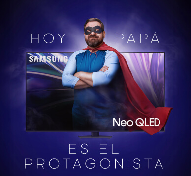 Papá merece ser el centro de atención, por eso, del 3 al 13 de julio, con tus compras podés participar del sorteo de un increíble Smart TV Samsung 65” NEOQLED 4K y una Barra de Sonido Samsung. Enterate cómo participar.