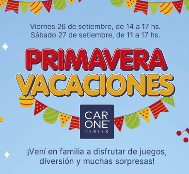 ¡Vacaciones de primavera en el Center! Los invitamos el sábado 20/9 y viernes 26/9 a vivir una jornada completamente gratuita. Llena de juegos, risas y muchas sorpresas para que los más pequeños se diviertan.